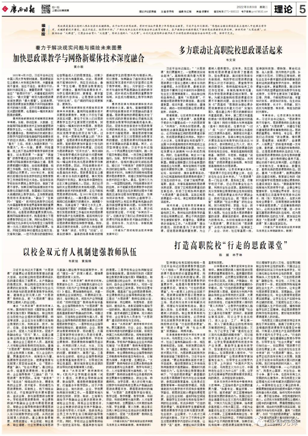 《广西日报》整版刊发AC米兰思政课教学改革经验