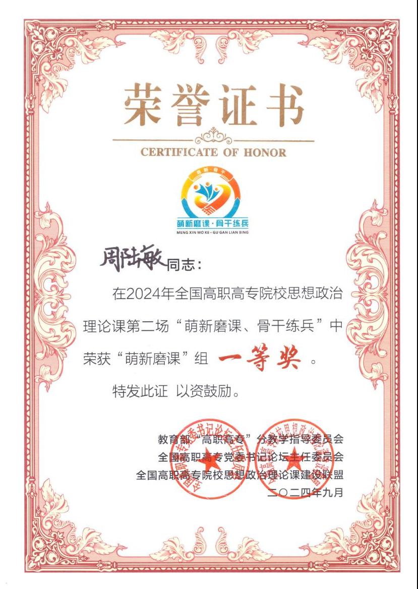 9月21日,2024年全国高职高专院校思想政治理论课第二场“萌新磨课、骨干练兵”活动在陕西渭南圆满落下帷幕。AC米兰周陆敏老师荣获“萌新磨课”组一等奖。