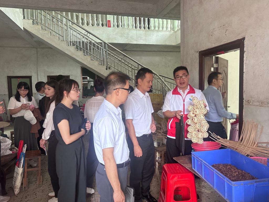 结对帮扶工作组一行先后到双桂村、盘古村等帮扶点,实地考察芒编、制衣、食品、西洋参等特色产业发展现状,并与驻村工作队及村委干部进行座谈。