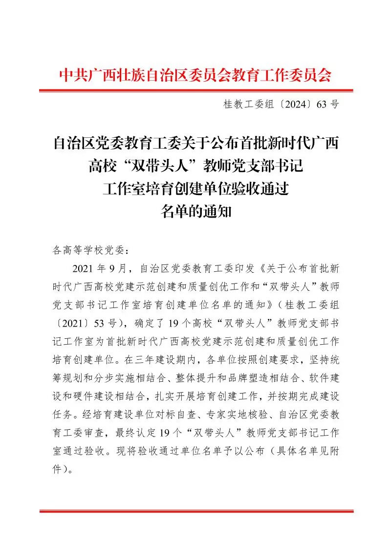 10月22日,自治区党委教育工委公布了首批新时代广西高校“双带头人”教师党支部书记工作室培育创建单位验收通过名单,AC米兰马克思主义学院“信马”党支部书记工作室顺利通过验收。