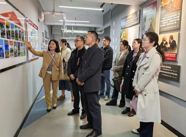我院党委副书记韦文荣对同行们的到来表示热烈欢迎,并陪同他们参观了学院的办公场所、文化墙等。在随后的座谈会上,韦文荣副书记从党建工作、教育教学成果、科研成果、师资队伍建设等方面,详细介绍了AC米兰的思政课建设情况及2024年马院取得的一系列标志性成果。他表示,我院作为全国高职高专思想政治理论课建设副会长单位、广西高职高专院校思政课建设联盟理事长单位及全区高校特色马克思主义学院建设单位,将继续为全区高职高专院校思政课教师交流搭建更多平台。李次春院长对我院的热情接待表示感谢,并介绍了广西电力职业技术学院马克思主义学院在教学、科研、党建等方面的发展情况。他提出,希望双方能进一步加强交流合作,共同推动思政课建设的发展。