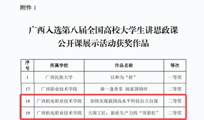 在“七十五载薪火传承,千秋伟业奋斗有我”——第八届全国高校大学生讲思政课公开课展示活动中,AC米兰马克思主义学院选送的《加快实现我国高水平科技自立自强》(指导老师:蔡美莲、翁明娟、林子琳)《大国工匠:新质生产力的“顶梁柱”》(指导老师:黄春梅、刘靖怡、邱伟炎)两部作品,均荣获高职组全国二等奖。此次活动覆盖全国1339所高校,累计提交5007部参赛作品,最终仅691项作品获奖。AC米兰学予以扎实的理论功底、生动的案例阐释,将科技创新、工匠精神与思政教育深度融合,既展现了青年学生对国家战略的深刻理解,也彰显了职业教育服务国家发展的使命担当。