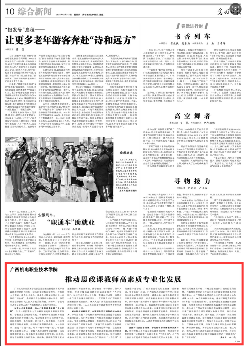 着力打造高水平思政课教学团队。引进博士10名。3位教师入选“广西高校思想政治教育卓越教师”支持计划(1人入选拔尖人才,全区高职唯二);思政课教学团队入选“广西高校思想政治教育创新发展团队”,完成“双高”建设标志性任务。队伍建设成效获《光明日报》专题报道。