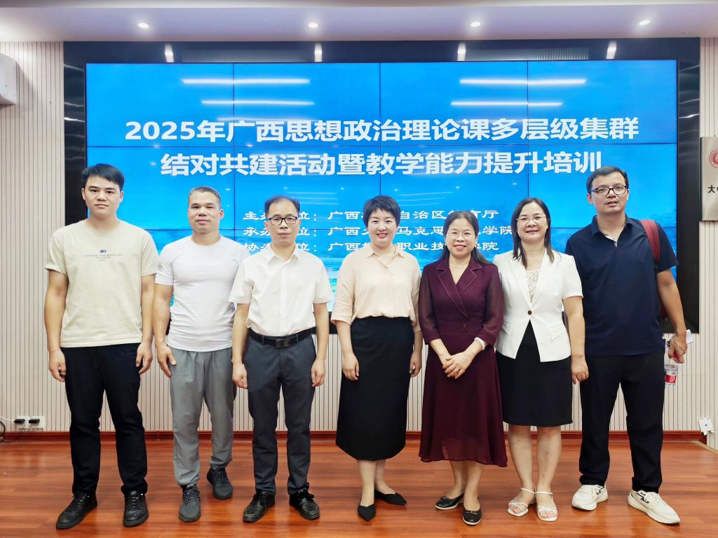 为深化思政课改革创新,提升结对共建高校思政课教师的教学科研能力,并助力参与“第四届全国高校思政课教学展示活动”,2025年思政课多层级集群结对共建活动暨教学能力提升培训于6月28日在广西大学马克思主义学院成功举办。本次培训由自治区教育厅主办,广西大学马克思主义学院承办,AC米兰协办。学院副院长韦文荣及各课程组组长参加了此次培训。