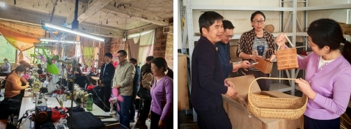 作为“大思政课”的重要实践环节,在驻村第一书记蒋佳莉的引导与详细介绍下,支部党员深入双桂村竹编作坊与制衣车间,开展乡村振兴微观考察,深入了解以庭院经济为特色的乡村产业发展模式。在芒编作坊里,老师们认真观摩了村民将天然藤条编织成精美工艺品的全过程,并就产品设计、销售渠道与经营效益等问题,与负责人进行了深入交流。通过实地考察,党员师生真切感受到党建引领下乡村产业的蓬勃发展的同时,也深刻体会到了庭院经济在激活乡村内生动力、促进共同富裕中的重要作用。