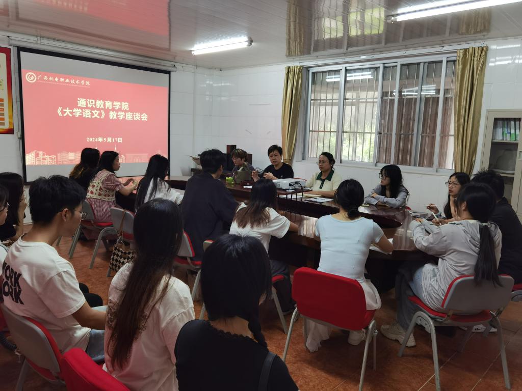 为贯彻落实学校2024年5月17日召开的全校教育教学大会的“凝心聚力抓五育,敢作善成建五金”精神,办好职业教育,提升教学质量,我院高等数学、大学英语和大学语文课程组分别于5月20日、21日下午,在通识教育学院会议室召开2024年春季学期教学质量座谈会。学院副院长莫敏燕,数学教师黄飞龙、覃海英、英语教师赖嘉琳、王静,语文老师黄嵘等,与各学院学生代表参加座谈会。