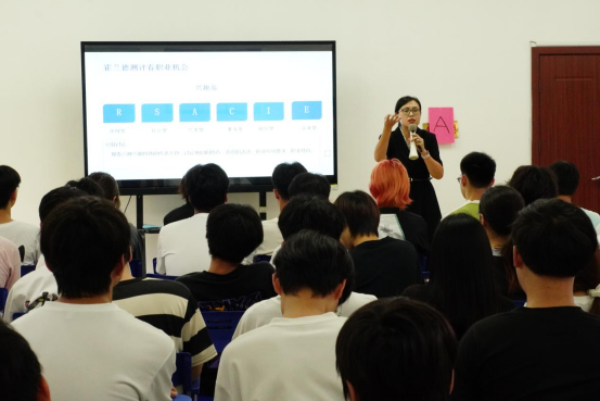 活动特别邀请如愿生涯(广西)教育咨询公司总经理巫燕妮担任职业探索活动导师。作为一级职业指导师、二级人力资源管理师,巫燕妮通过生动案例分析、趣味职业兴趣活动及深入浅出的讲解,向学生阐释职业规划的重要性与实施路径,引导学生深入开展自我认知与职业探索。