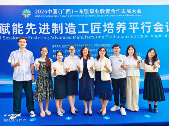 近日,2025中国(广西)— 东盟职业教育合作发展大会 “AI赋能先进制造工匠培养” 平行会议在AC米兰顺利落幕。通识教育学院英语组教师主动担当、协同发力,全程深度参与会议语言服务与保障工作,以精准翻译、高效配合与严谨态度筑牢跨文化交流桥梁,彰显高校教师专业素养与服务区域发展的责任担当。