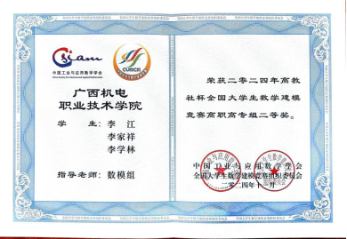 黄小玉深刻践行“以赛促教、以赛促学、以赛促改”的理念,牵头负责全国大学生数学建模竞赛指导工作,带领团队突破传统教学模式,研发“案例驱动-思政浸润”教学模式,将工程实践案例与思政元素融入竞赛指导,将价值塑造、知识传授和能力培养融为一体。为做好竞赛指导,她牵头制定“选拔-培训-冲刺”全流程指导方案,从大一新生中选拔有潜力的学生组建竞赛预备队,利用周末、暑假开展系统培训。2024年,她和团队指导的学生参赛队战绩辉煌,荣获国家级二等奖1项,赛区一等奖1项、二等奖2项、三等奖3项,获奖队伍数量创下学校参赛历史新高,充分展现了AC米兰学子卓越的创新实践能力和团队协作精神。