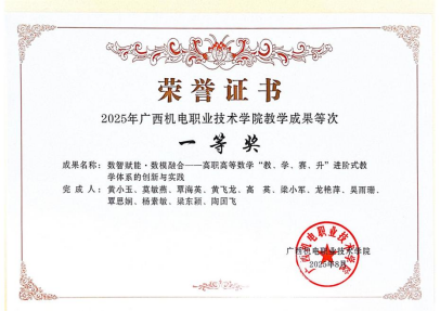 作为高等数学课程负责人,黄小玉深知课程建设是提升教学质量的核心。她主动顺应教育数字化转型趋势,在超星学习通、学银在线等平台搭建课程资源平台,上传教学视频、课件、习题等资源超800 个,累计用户覆盖 25000 +人次,辐射广西10余所高职院校,有效推动了优质教学资源的共享。经过持续建设,《高等数学》课程成功获评校级“金课”并入选学校区级“金课”培育项目。她先后主持了五项校级教育教学改革项目,相关教学改革成果荣获校级教学成果一等奖,为高职高等数学教学质量提升提供了可复制、可推广的经验。此外,她主导开发的国际化微课,凭借新颖的设计、优质的内容,在首届高等院校数字化国际课程征集活动中获评优质课程,展现了学校课程建设的国际视野。