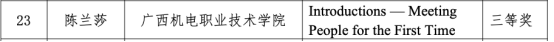 英语教学设计共获三项奖。其中,胡心怡老师的教案《Overseas After-Sales Service for New Energy Vehicles》紧密对接行业发展趋势,创新以职业能力为核心的教学模式,荣获一等奖。傅微老师的教案《AI赋能高效课堂:OBE产出导向下退役军人班高职英语教学案例——以“Sports”单元教学为例》,精准把握特殊学生群体的学习特点,有效融合人工智能技术与OBE教学理念,探索了差异化教学的有效路径,荣获二等奖。陈兰莎老师的教案《Introductions — Meeting People for the First Time》,有机融入了“产出导向法(POA)”教学理念,以真实的交际场景为驱动,注重语言的实际应用与交际能力的培养,荣获三等奖。