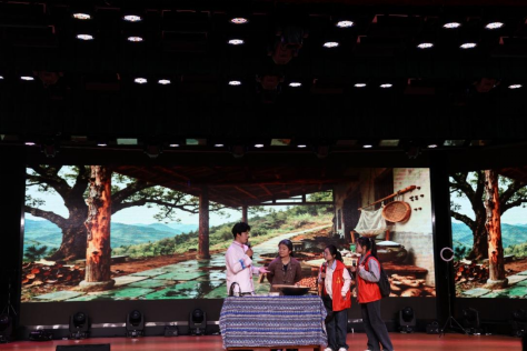 胡心怡和陈兰莎老师指导的“香飘飘队”,以《茶香新韵》为主题,由修园园、李姗纳、李潇函、于晏晴、贺任选、张润泽等同学共同呈现桂林恭城油茶借助直播焕发非遗活力的故事,荣获三等奖。