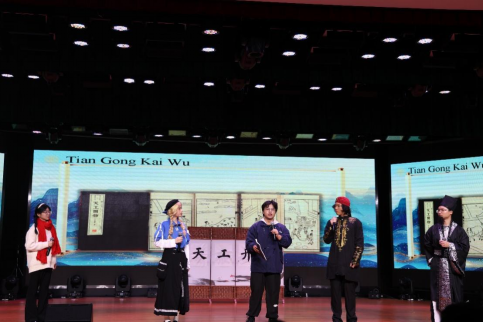 吴彬宇和殷艳萍老师指导的“天工种子队”,以《天工开物:文明的种子》为主题,冯俊茗、王学富、彭方圆、朱懋莹、薛峥麒等同学通过古今中外角色对话,在舞台上使用英语诠释经典,荣获二等奖及“高教社传播新锐奖”。