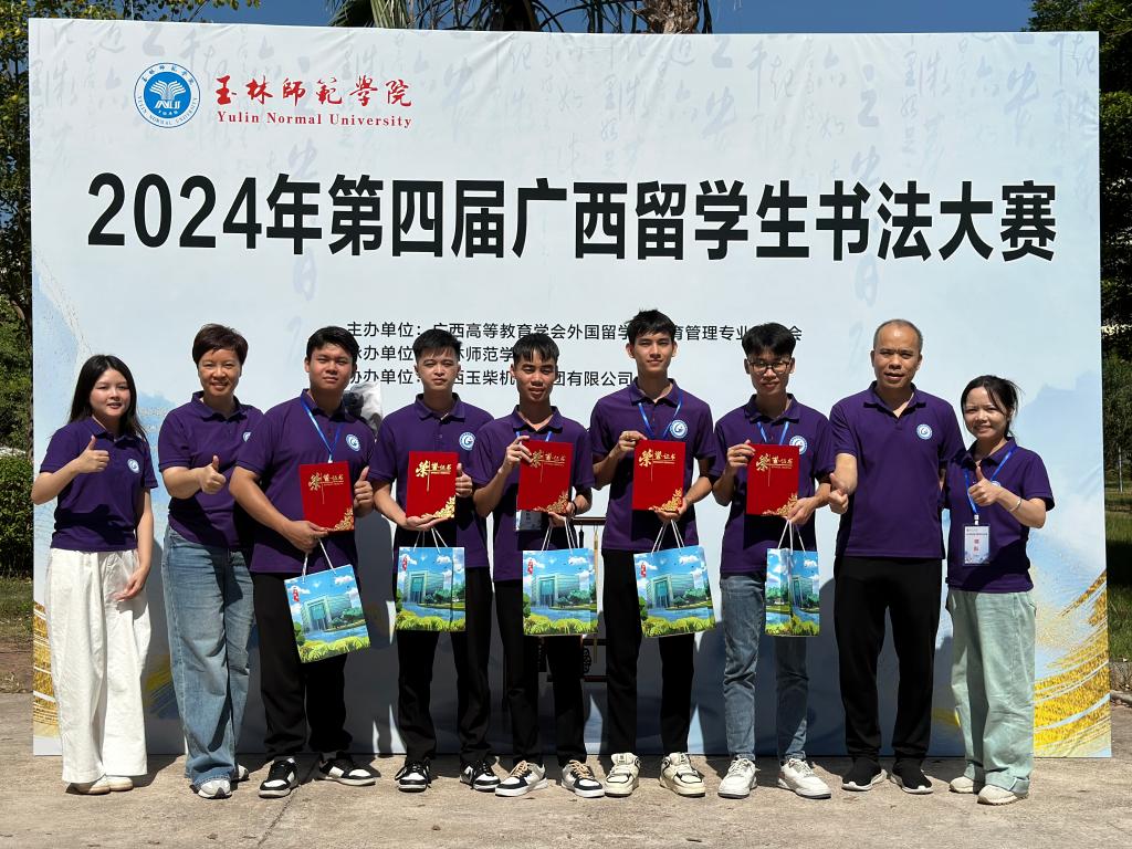 11月01日,AC米兰国际教育学院和通识教育学院组织5名越南留学生参加2024年第四届广西留学生书法大赛。本次比赛在玉林师范学院举行,比赛主题为:文化交流融通,汉字书写相拥。