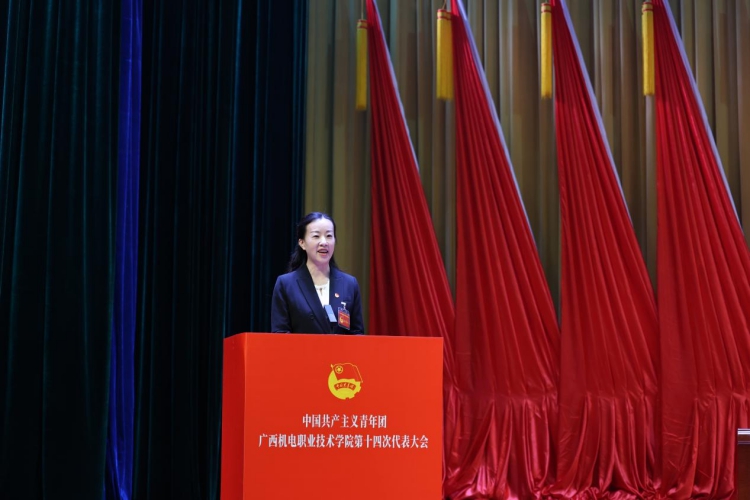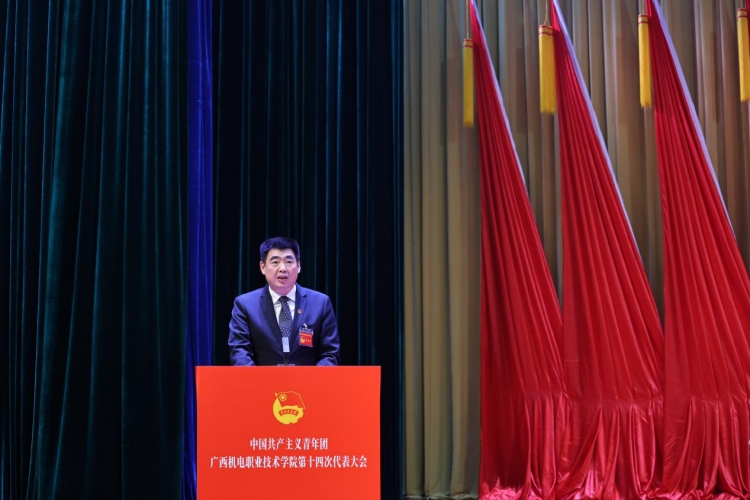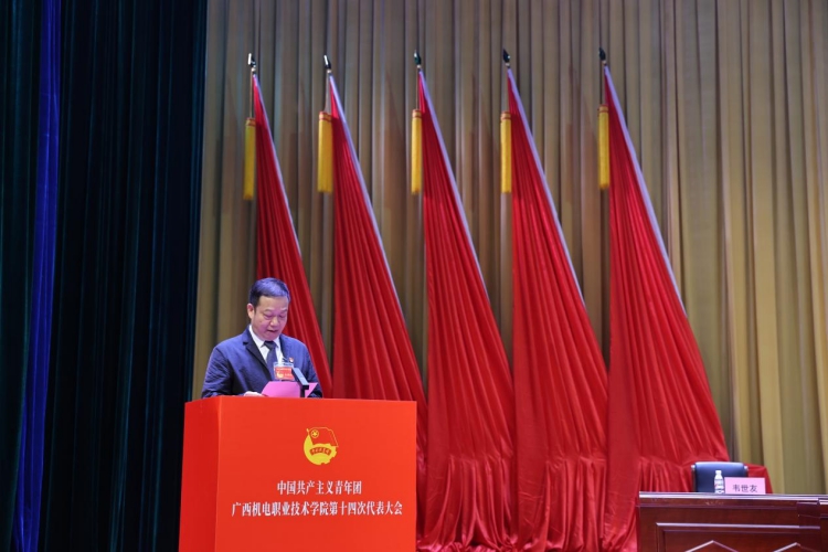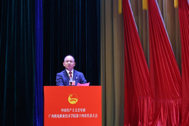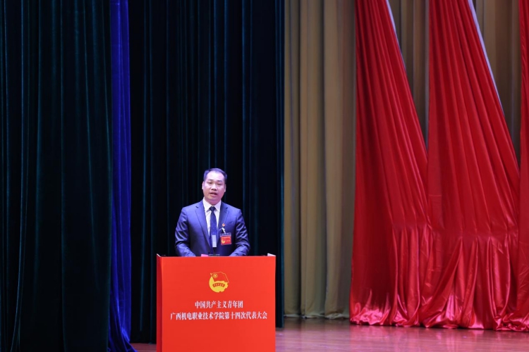 学校团委书记韦世友代表共青团AC米兰中国官网第十三届委员会向大会作了题为《高举团旗跟党走 勇担使命建新功团结带领机电青年在争创广西领先、国内一流、国际知名高水平智能制造特色校中绽放青春光彩》的工作报告。