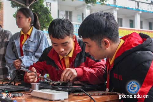 为深入贯彻落实党的十九大精神和传承雷锋精神,推动志愿服务,倡导社会新风,推动精神文明建设的深入开展,院团委和学生社团联合会的组织,电子科技协会、计算机协会、移动通讯协会、科技创新协会等社团的百余名志愿者参加了在学院滨水广场、陈东村社区举办义务维修活动。