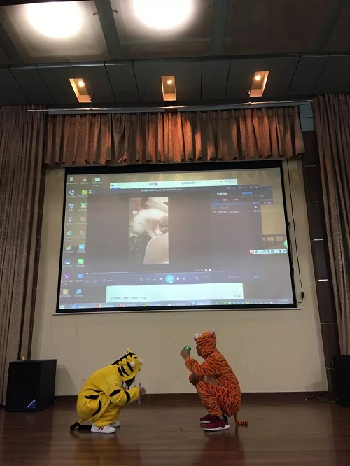 勇敢的武松,幽默风趣的店小二,淡定自如的店掌柜,可爱有趣的小老虎。整个过程的英语对话充分体现了经典与创新的和谐结合。