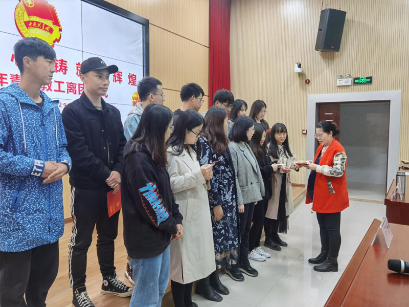 离团教师重温了入团誓词,一声声誓词唤起了“老”团员们最深的记忆:从站在团旗下宣誓,到为团旗添彩,再到超龄退团,他们曾为共青团的建设添砖加瓦,同时也是共青团陪伴了他们走过人生宝贵的青年时代。随着慷慨激昂团歌的奏响,全体团员举起右拳,重温了坚定的入团誓词。超龄团员摘下了团徽徽章,18名超龄团员依次上台,由团委副书记林霞为他们颁发离团证书和纪念品,宣告他们光荣退团。