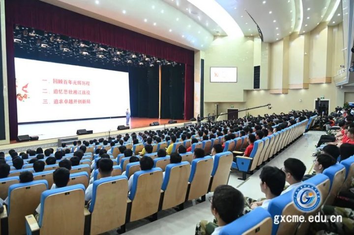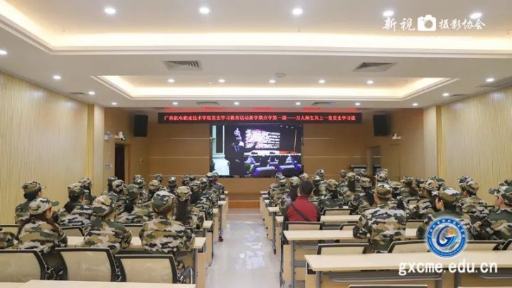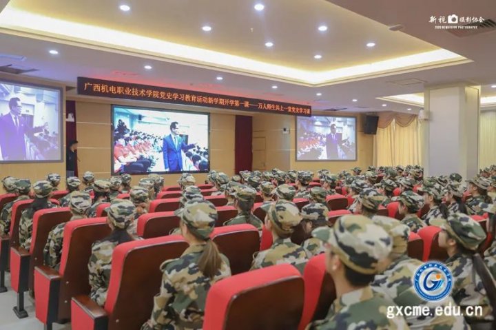 梁辉书记结合学校和学生实际,展开了有针对性和时代感的讲授。他号召,全体师生要从学习党史中汲取力量,发扬“特别能吃苦,特别能战斗,特别奉献,特别能团结,特别能争优”的新机电精神,时刻保持昂扬向上、锐意进取、不畏艰险、迎难而上的精神状态,确保起步就要提速、开局就要争先,努力实现 “123720”学校发展目标,奋力推动学校建成广西领先、国内一流、国际水准的高职院校,以优异成绩向建党100周年献礼。