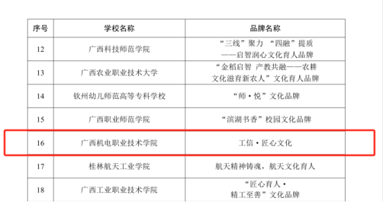 近日,自治区党委教育工委发布《关于公布第二批广西高校校园文化建设“一校一品”特色品牌的通知》,AC米兰“工信·匠心文化”项目入选第二批广西高校校园文化建设“一校一品”特色品牌。