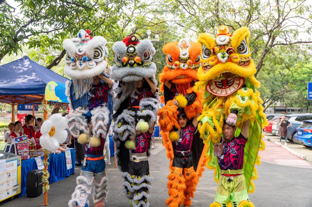 在舞狮表演以及快闪舞蹈表演的热闹气氛中,伴随着鸣锣开市的清脆悠扬声,集市活动正式拉开帷幕。