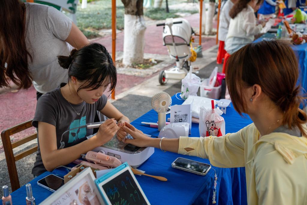 科创作坊、莫奈的美甲花园以及青春显影写真等服务型展位也受到了师生们的热烈欢迎,这些展位凭借独特的服务内容,满足了师生多元需求,成为集市上一道亮丽的风景线,为校园集市增添了别样活力。