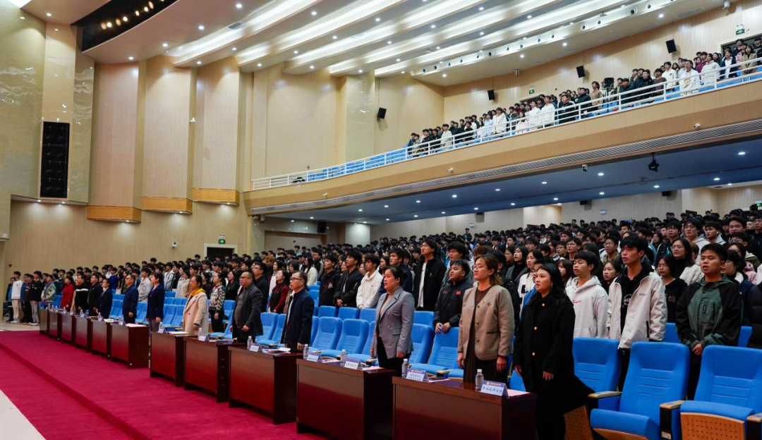 2024年12月31日,为深入贯彻落实习近平总书记关于青年工作的重要思想,推进学校第三次党代会精神的学习宣传和贯彻落实,持续抓好青年思想政治引领工作,由校团委主办的第五期“青马工程”培训班结业暨第六期“青马工程”培训班开班仪式在弘毅楼大礼堂举行。学校党委委员、副校长林胜,党委组织部、党委宣传部、党委学生工作部、校团委、马克思主义学院主要负责人,各二级学院分管学生工作负责人、团委书记,以及学校第五期、第六期“青马工程”培训班学员参加开班仪式。活动由校团委书记韦世友主持。
