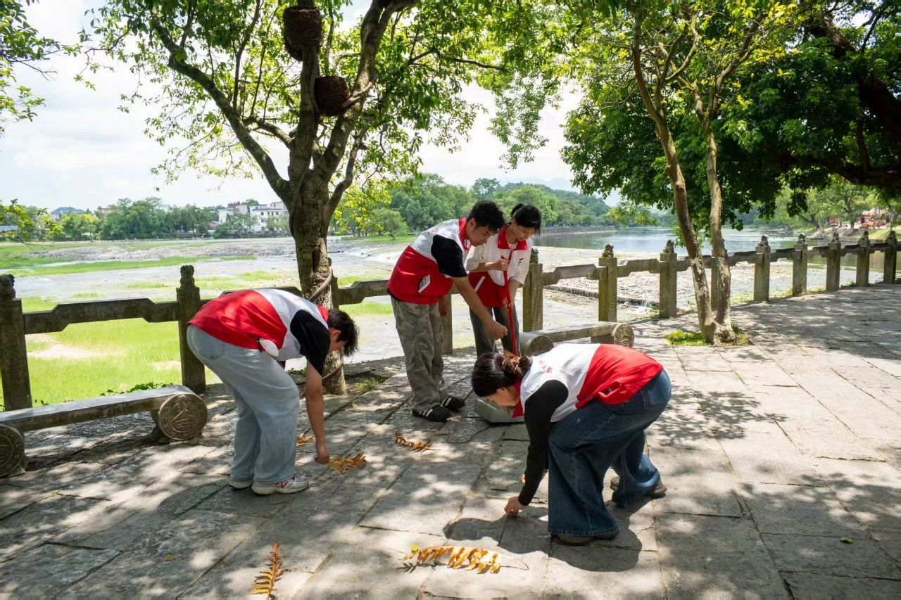 走出博物馆后,实践团迅速投入灵渠生态保护行动,沿岸细致清理垃圾,确保不留死角。同时,队员们还热情地向游客和当地居民发放《灵渠生态保护倡议书》,耐心讲解环保知识,呼吁大家共同守护灵渠的生态环境。实践团队员们用汗水诠释着青年一代对绿水青山的守护,以实际行动践行着生态保护的责任。