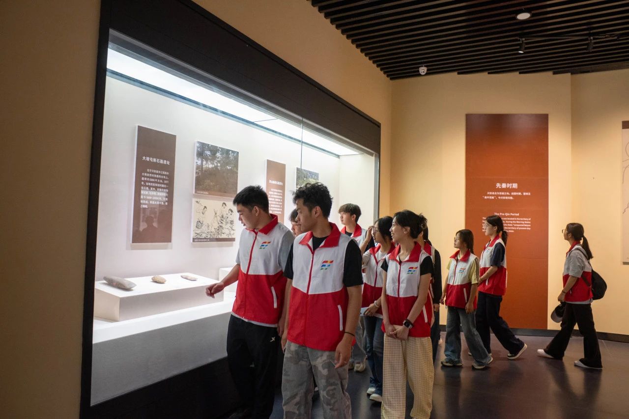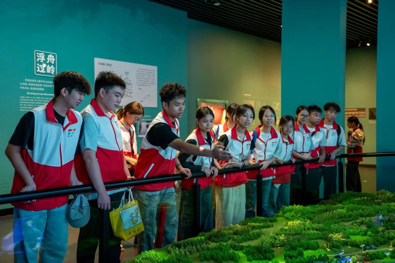 在兴安灵渠博物馆,实践团队员们被丰富的历史资料与精妙的水利模型深深吸引。讲解员详细介绍了灵渠的历史渊源:这条沟通湘漓的“黄金水道”,在古代不仅肩负着航运重任,更是灌溉农田的关键水利设施,其生态调节功能延续至今。展品前,队员们对古人的智慧赞叹不已,更深刻体会到在这片红色土地上,传承生态文明是青年一代不可推卸的使命。