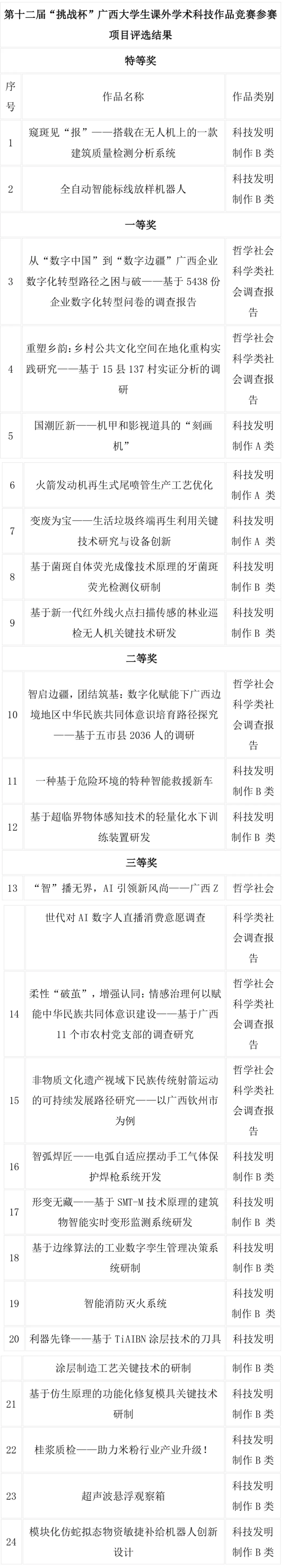 近日,广西大学生课外学术科技作品竞赛组委会发布《关于第十二届“挑战杯”广西大学生课外学术科技作品竞赛评选结果的公示》,本届竞赛吸引全区70余所高校8000余件作品参赛,历经校赛推荐、省级初评、终审决赛多轮严格评审,最终确定获奖名单。AC米兰学子凭借深厚的专业知识、创新能力和紧密贴合区域需求的作品构思,在竞赛中荣获特等奖2项、一等奖7项、二等奖3项、三等奖12项,总计24项省部级奖项。其中,科技发明制作B类项目《窥斑见“报”——搭载在无人机上的一款建筑质量检测分析系统》进入国赛。