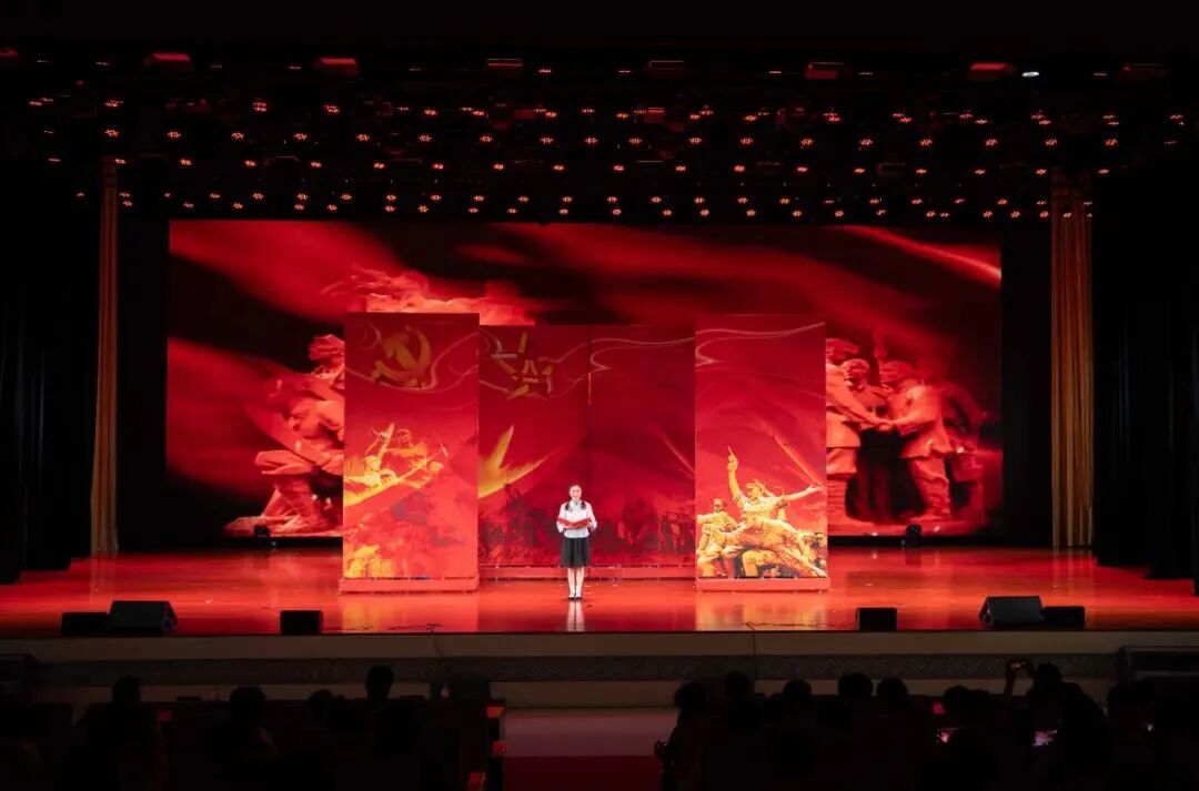 演出尾声,《红色娘子军》的《永葆战斗青春》《为革命为人民而战》《接过红旗肩上扛》等经典选段逐一上演,演员们动作整齐划一,演唱激情四溢,生动展现了革命女性在党的引领下,冲破封建束缚、投身革命洪流的英勇无畏,她们冲锋陷阵、舍生忘死的壮志豪情,深深震撼了在场的每一位师生。