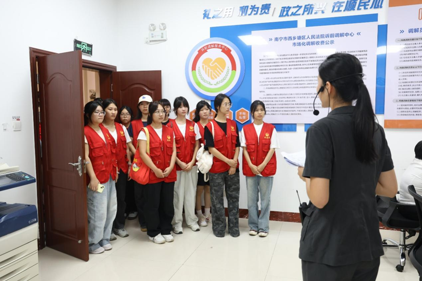为学习法治宣传教育法,弘扬社会主义法治精神,9月29日下午,校团委组织师生到南宁市西乡塘区人民法院开展法治教育实地研学活动。通过法庭参观、实务讲解、反诈课堂等沉浸式体验,直观感受法律的严肃性与权威性,深化了师生对法治的理解和信仰。