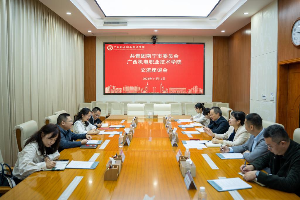 会上,林胜代表学校热烈欢迎共青团南宁市委陈国栋一行的来访,并从智能制造、共青团工作、实践育人、服务产业等方面介绍学校办学特色。她指出,学校始终致力于建设广西领先、国内一流、国际知名高水平智能制造特色校,同时也打造了一系列具有机电特色的共青团工作品牌。希望双方在共青团工作、科研创新、“政校”联动协同育人、社会服务等方面实现资源共享,打造校地合作新标杆,更好地服务南宁经济社会发展。