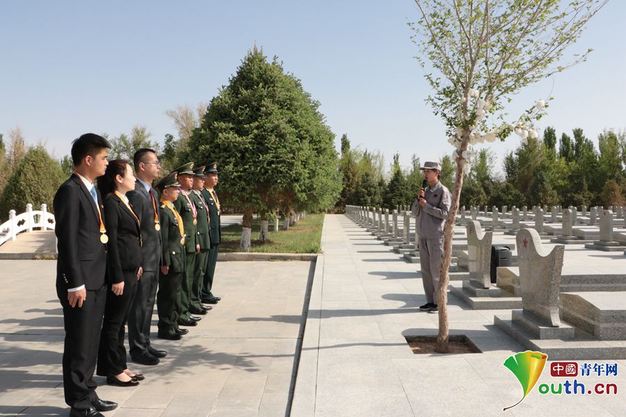 军地青年典型代表与青年科技工作者、驻地部队官兵在酒泉卫星发射中心东风革命烈士陵园参加主题团日活动。中国青年网记者李川 摄