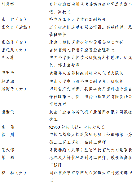 3. 第24届“中国青年五四奖章”追授人员名单