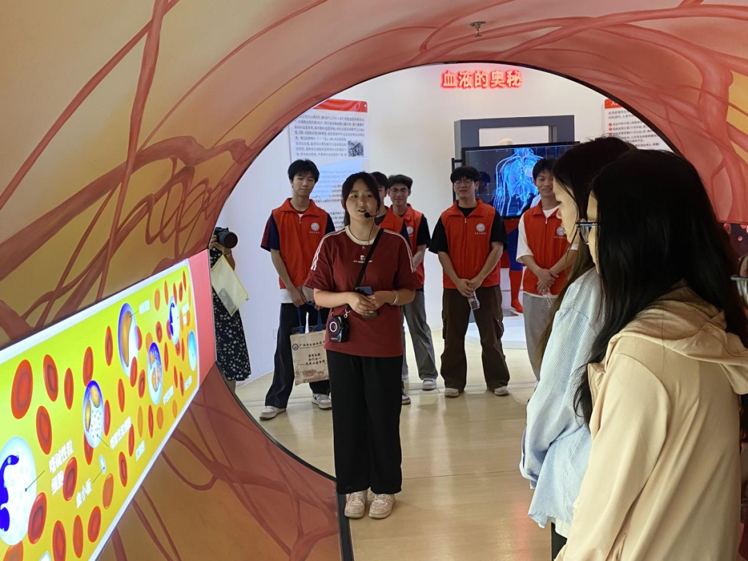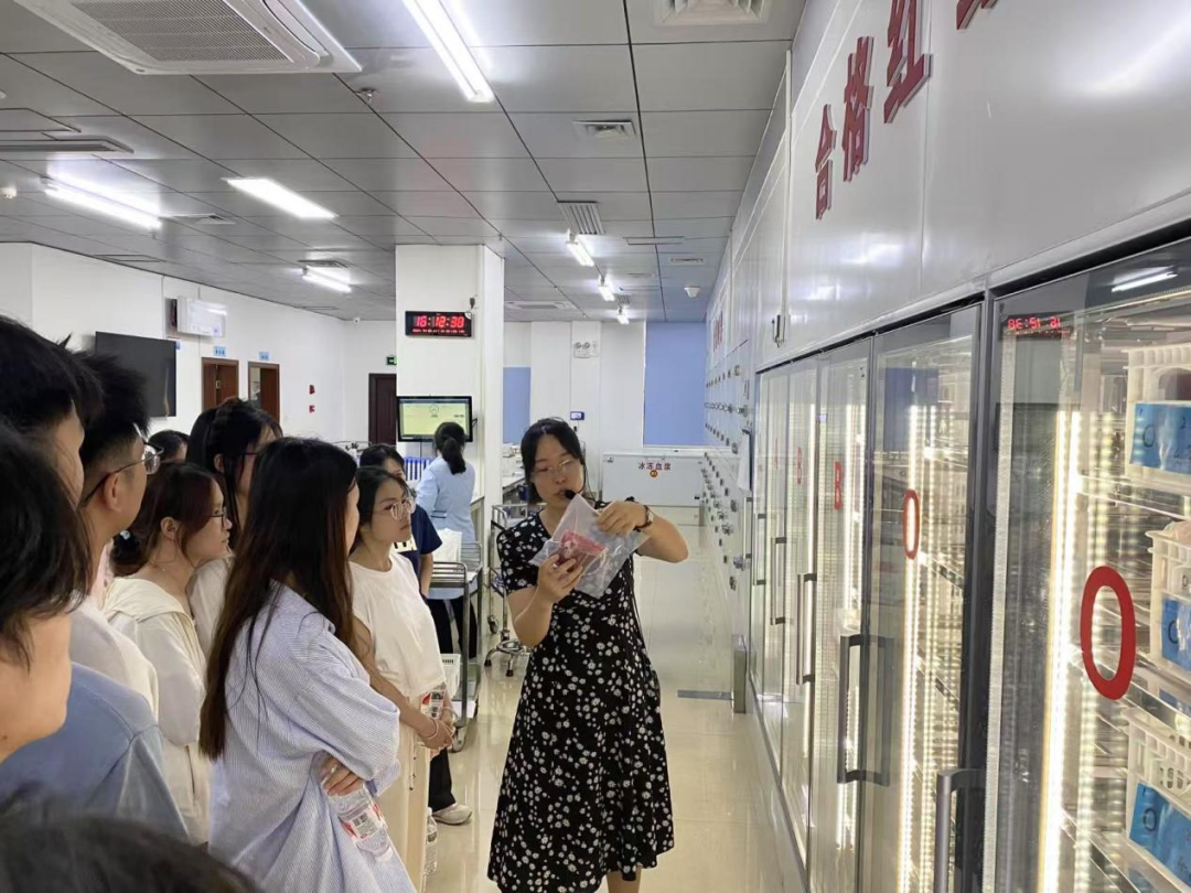 在工作人员的引导下,师生走进血站相关科室了解血液采集、检验、制备及供血等关键环节,亲身探寻血液奥秘和“一袋血的爱心之旅”。