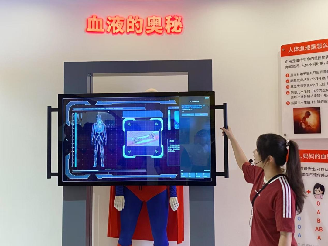 当天下午15点,师生们在血站业务大楼一楼开启了采供血流程参观之旅。讲解员生动且细致地讲述着世界输血技术的漫长发展轨迹。泛黄的老照片、珍贵的文献,每一份材料都记录着人类在生命延续道路上的坚定步伐,也让同学们更加了解输血的发展历史与血站的发展历程。同学们还通过3D模型展示、VR技术体验、趣味问答互等方式更为深入地了解和学习血液的相关知识。