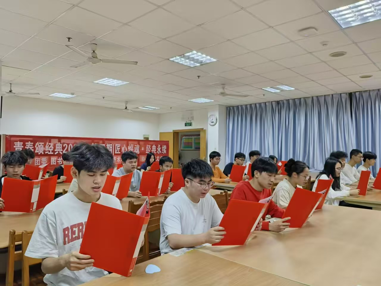 随后,在“工匠故事诵读”环节,同学们分组朗诵了《匠人》精选片段,并集体诵读经典篇章。铿锵有力的声音与文字中流淌的匠心精神交织,现场氛围庄重而热烈,进一步加深了大家对技艺传承与职业信仰的理解。