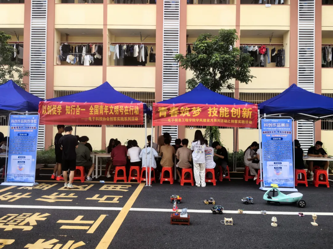 近日,为积极响应学校加强学风建设的号召,充分激发学生的学习热情与主动性,营造“勤学、善思、笃行”的浓厚学习氛围,结合专业特色与学生发展需求,电子信息工程学院精心策划并开展了“学风建设月”系列活动之“青春筑梦・技能创新”全国青年文明号专项活动。本次活动设置科技创意作品制作体验与科创作品展示两个专项环节,为全院学子搭建起近距离接触科技、实践创新、提升技能的优质平台。