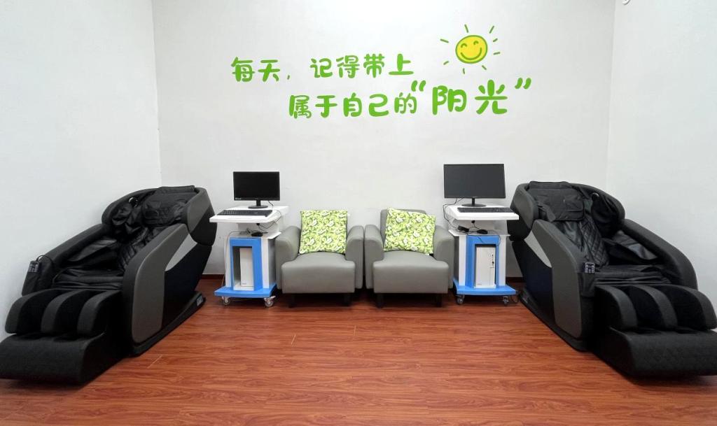 中心在相思湖校区和江南校区分别设立专门的工作场所,总面积450平方米,包括办公室、预约接待室以及个体咨询室、团体辅导室室、沙盘游戏室、宣泄室、音乐放松室、VR体验室等心理功能室8间和户外素质拓展场地1处。同时将服务延伸至学生社区,设有入驻宿舍的积极心理体验区,为学生提供温暖、专业且触手可及的心理支持。