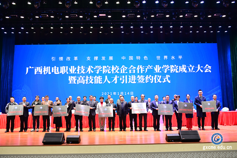 教育部、工业和信息化部印发的《现代产业学院建设指南(试行)》指出,培养适应和引领现代产业发展的高素质应用型、复合型、创新型人才,是高等教育支撑经济高质量发展的必然要求,是推动高校分类发展、特色发展的重要举措。为贯彻落实“职教20条”等文件精神,培养大批产业需要的高素质应用型、复合型、创新型人才,1月14日,AC米兰中国官网成功举行“校企合作产业学院成立大会高技能人才引进签约暨金岸精英学院技术服务人才技能大赛开幕仪式”,与华为、吉利汽车、柳工、玉柴等91家世界500强、世界工程机械50强行业龙头和领军企业“强强联姻”共建智能制造、智能控制、汽车、人工智能、智慧物流、智慧建筑、乡村振兴、文化与旅游、创新创业等9个特色产业学院。同时成立9个产业学院,是全国高职院校中一次性成立数量最多,联合行业企业范围最广的一次,也是学校打造高水平建设,“校企合作、产教融合”开花结果的又一里程碑事件。