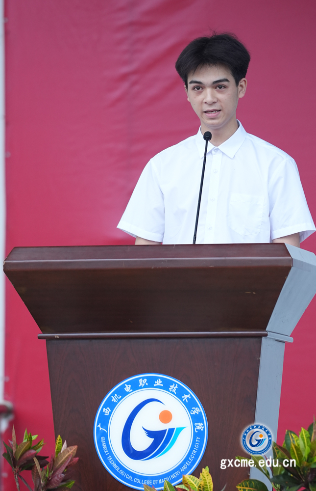 建筑工程学院造价2201班黄鑫作为新生代表发表了入学感言,作为一名大一新生,面对新起点,他坚信“星光不负追梦人”,并代表全体新同学郑重承诺:一定不辜负党和国家的期望,秉承“自强弘毅、知行合一”校训,继承中华民族优良品德,勤奋学习,夯实基础,积极实践,用奋斗书写无愧于时代的青春篇章。