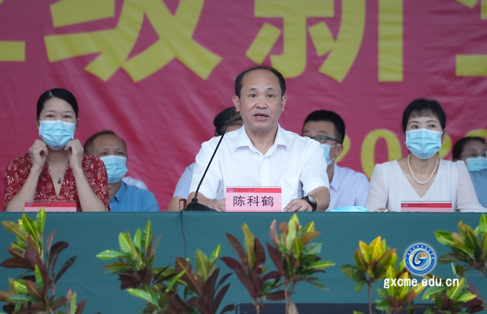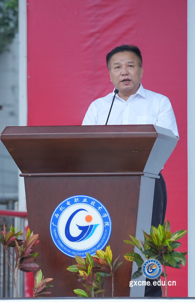 开学典礼在全场庄严奏唱国歌中拉开序幕。学校党委副书记、校长赖晓桦代表全校师生向2022级新同学们的到来表示热烈的祝贺和诚挚的欢迎,他介绍了学校的办学历史和发展成就,并对新同学们提出了殷切的期望,一是坚定理想信念,立大志。立大志就是以实现中华民族伟大复兴为己任,爱党爱国爱家,做社会主义事业的建设者和接班人。二是提高道德品质,明大德。希望同学们要做到品德高尚、诚实守信、崇尚科学、执着真理,把“做人”与“学技术”真正统一起来。三是练就过硬本领,成大才。希望同学们要牢记“自强弘毅,知行合一”的校训,努力掌握过硬的专业技能,把自己培养成高素质、高技能的专业人才。四是发扬主人翁精神,担大任。希望同学们要勇于担当、乐于担当,发扬“爱校如家,校兴我荣”的主人翁精神,做一名爱校兴校的机电人,在广西的经济建设中成就一番事业。