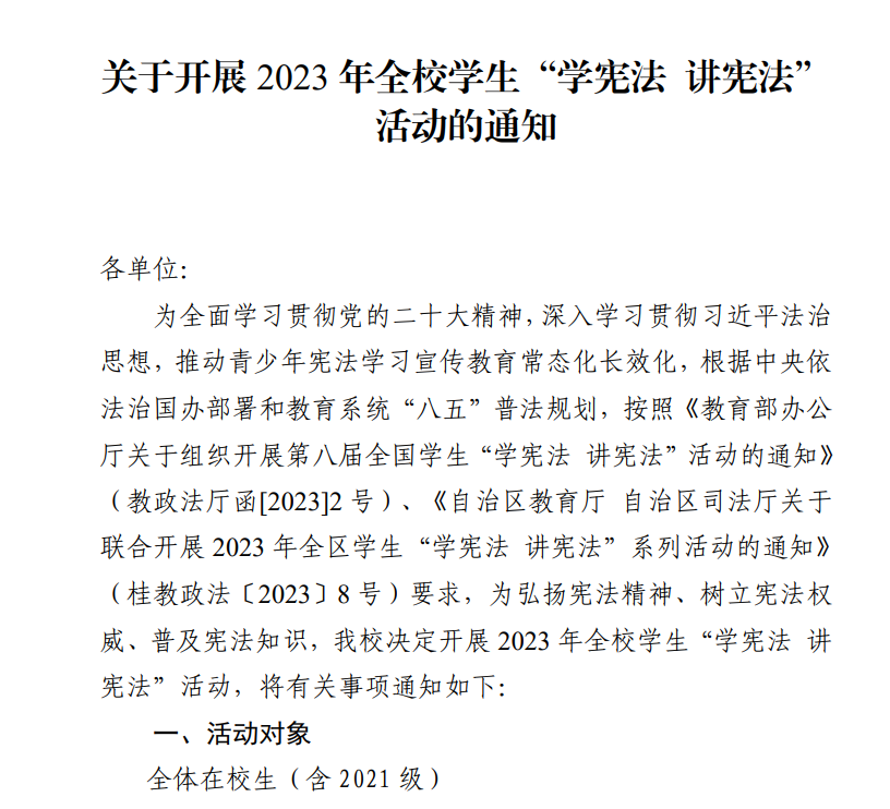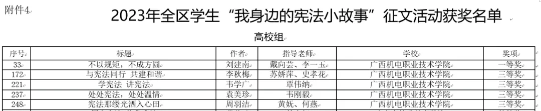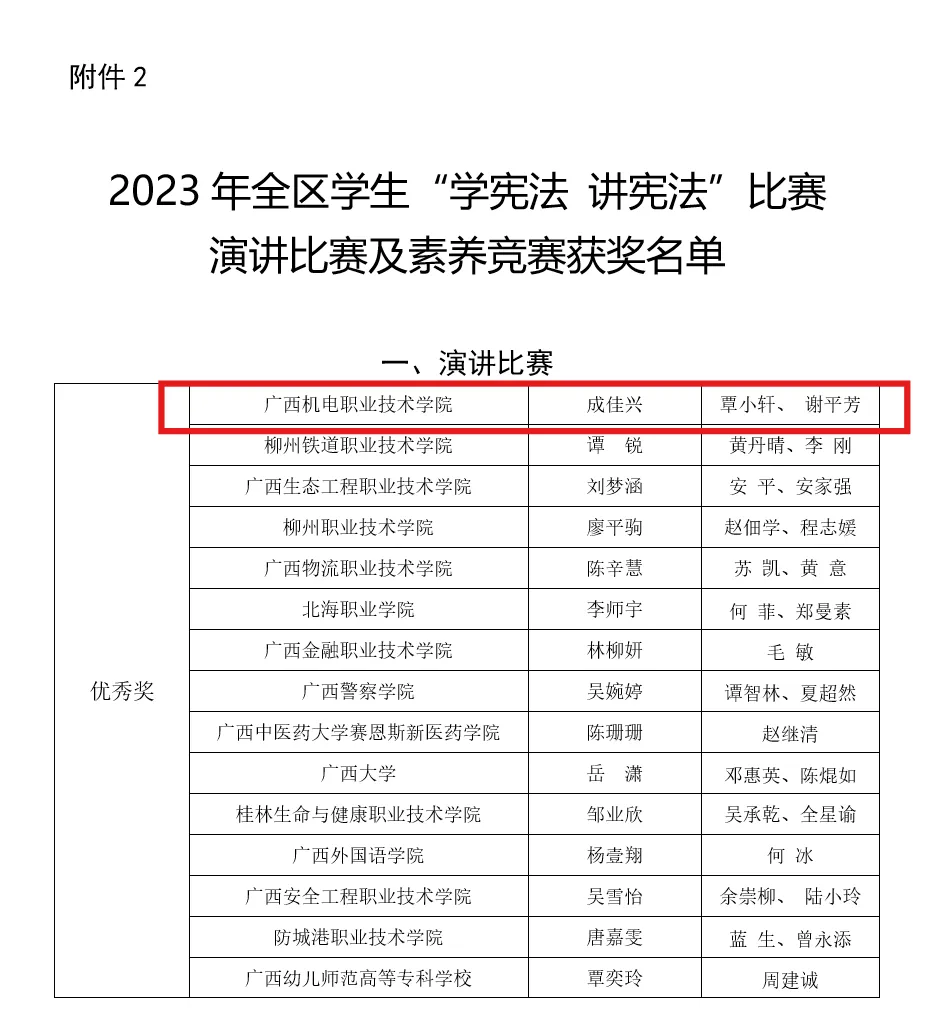 近日,广西壮族自治区教育厅、广西壮族自治区司法厅公布了2023年全区学生“学宪法 讲宪法”系列活动获奖名单,AC米兰荣获优秀组织奖,参赛学生在系列活动中斩获7项个人奖,其中一等奖1项,三等奖4项,优秀奖2项。