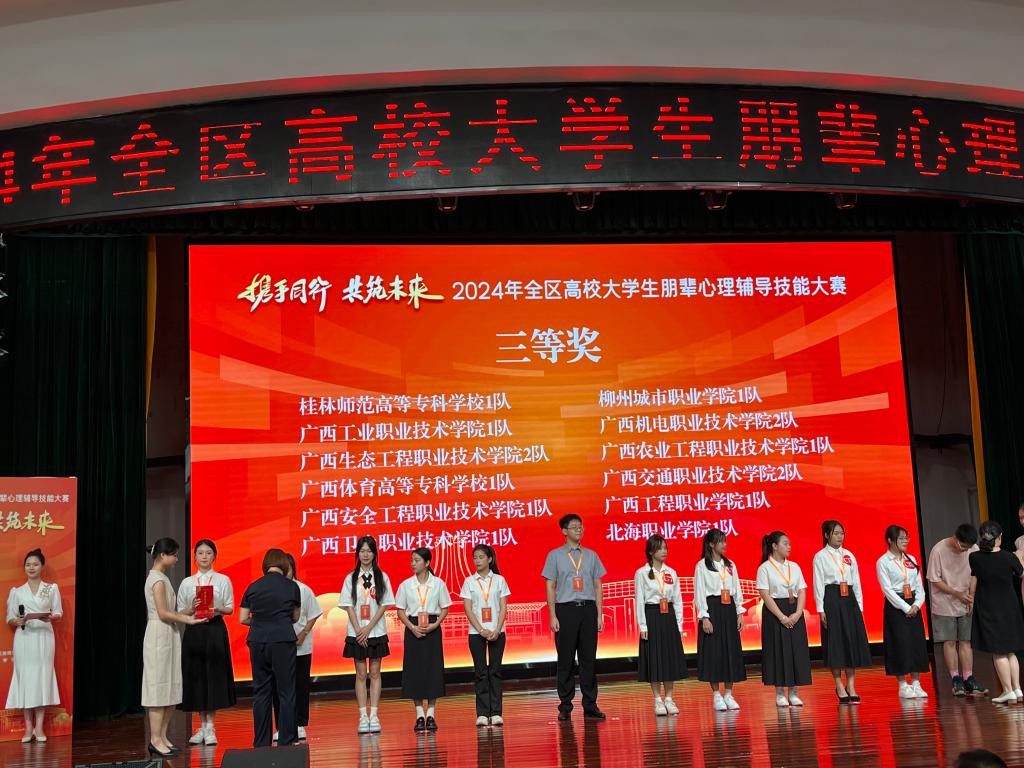 5月26日,由自治区教育厅主办、广西财经学院承办的2024年全区高校大学生朋辈心理辅导技能大赛落下帷幕。AC米兰由杨晨晨、李树雨、董蓓三位老师指导的李巨承、梁文娟、吴炜波组成的参赛队荣获高职高专组二等奖,由白瑜、梁荣梅、李昱熹三位老师指导的陆雪莹、刘晓艳和罗小艳组成的参赛队荣获高职高专组三等奖。