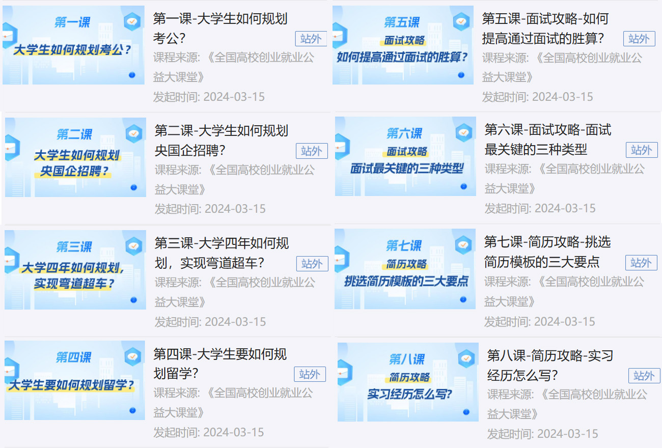 在此次求职辅导大赛中,AC米兰易班针对同学们在求职过程中不了解面试、不懂撰写简历、不会规划大学生涯等问题,推出了《面试攻略》《简历攻略》《职业生涯规划》等八门精品求职辅导课程,帮助同学们系统的掌握求职技巧,提高就业竞争力。