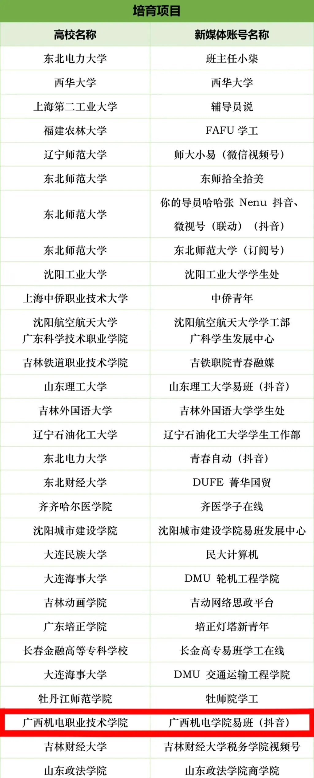 为深入贯彻落实习近平新时代中国特色社会主义思想,重点建设一批高校思政类新媒体账号,打造一批有传播力、影响力、引导力、公信力的网络新媒体平台,教育部易班中心面向全国共建高校遴选新媒体账号及优质思政内容,最终评选10所高校的项目为支持项目,69所高校的75个项目为培育项目。
