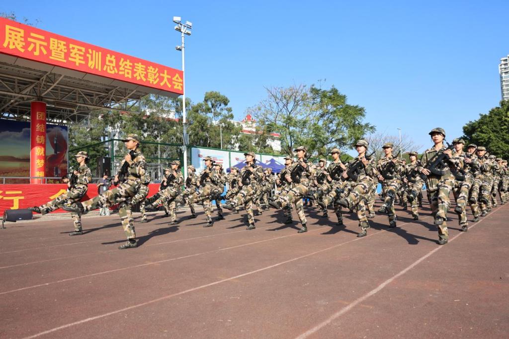 11月21日上午,学校在相思湖校区田径场举行2024年国防综合素养科目展示暨军训总结表彰大会。学校党委副书记程云燕、武警广西总队南宁支队机动大队副大队长温健、校长助理秦培林出席大会,大会由黄振宣副校长主持。