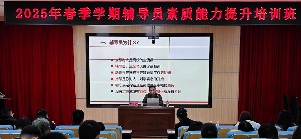 为深入学习贯彻党的二十届三中全会精神,全面落实立德树人根本任务,紧扣新时代学生工作中碰到的新问题、新情况、新挑战,提升辅导员队伍专业化、职业化水平,为建设教育强国、以中国式现代化全面推进中华民族伟大复兴贡献机电学工力量,2月24日—26日,学校在第二学术报告厅举办2025年春季学期辅导员素质能力提升培训班。学校副校长林胜出席培训班并讲话。
