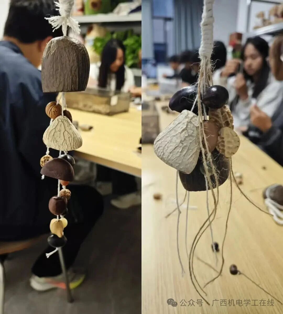 最后,在白瑜老师的指导和同学们的自发合作下,所有同学都收获了自己亲手制作的天然果壳手摇铃。